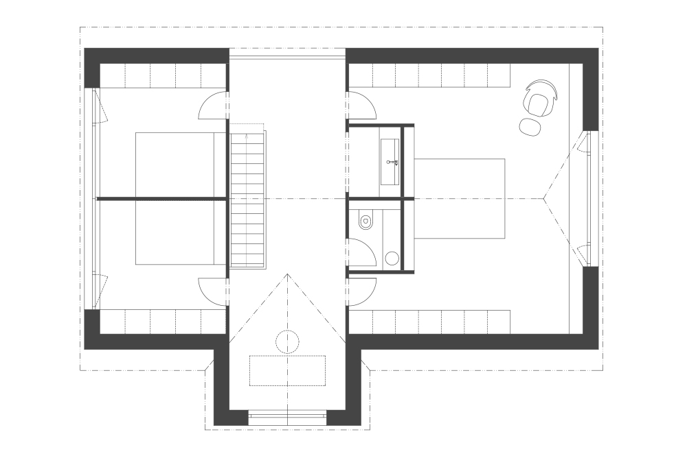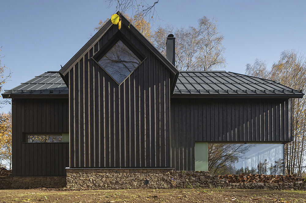 Enclavada en la naturaleza virgen del Parque Nacional Sumava, esta casa de vacaciones combina el estándar de una vivienda familiar con la esencia de una cabaña tradicional local. El diseño se adapta a las estrictas regulaciones del parque, adoptando una forma tradicional integrada con el entorno.
