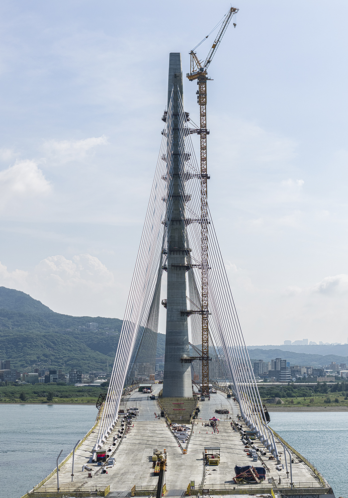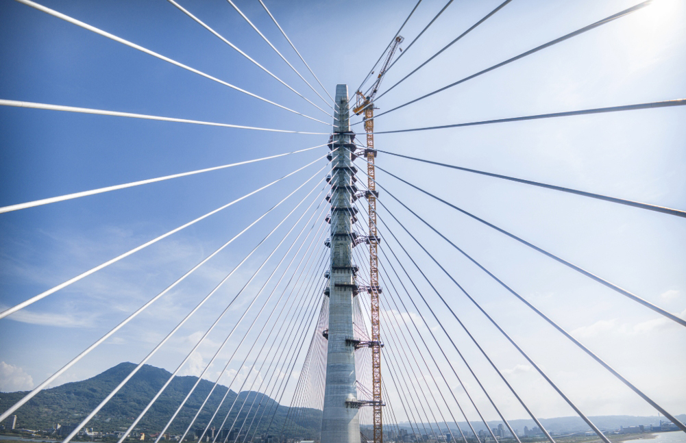 El Puente Danjiang, el cual se extiende sobre la desembocadura del río Tamsui y atraviesa Taipéi—, conforma la estructura atirantada asimétrica de torre única más larga del mundo y constituye una pieza clave dentro del programa integral de modernización de la infraestructura regional.
