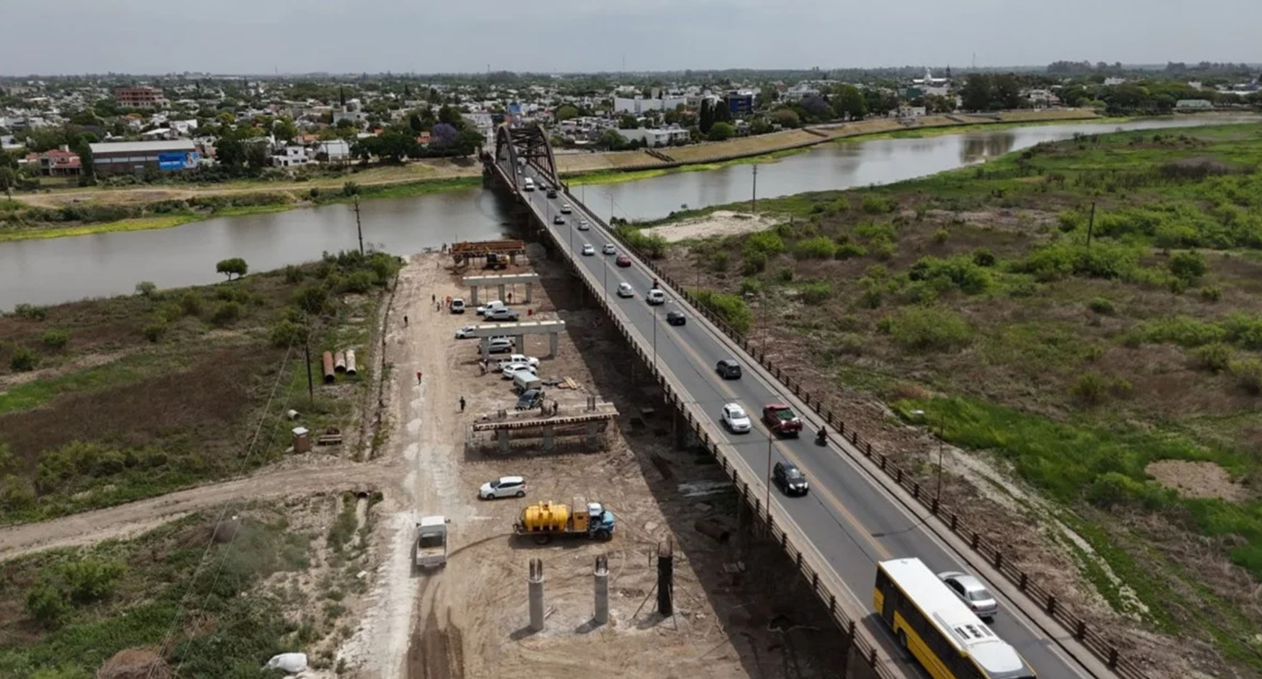 La construcción del nuevo Puente Carretero que unirá Santa Fe con Santo Tomé avanza con la ejecución de pilotes, columnas, cabezales y vigas, y se prepara para intervenir en el cauce principal del río Salado mediante un terraplén que permite continuar los trabajos sin interrumpir el curso del agua.