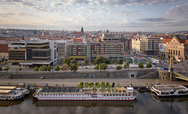 El proyecto buscó reconectar el edificio con la ciudad, no solo activando la planta baja sobre la calle Pařížská, sino extendiéndolo hacia el río Vltava mediante una arquitectura transparente, jardines y un nuevo pabellón de arte contemporáneo accesible al público. Los espacios culturales y artísticos del nivel inferior son de libre acceso, reafirmando la vocación pública del conjunto.
