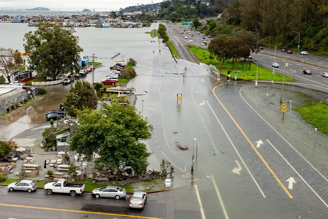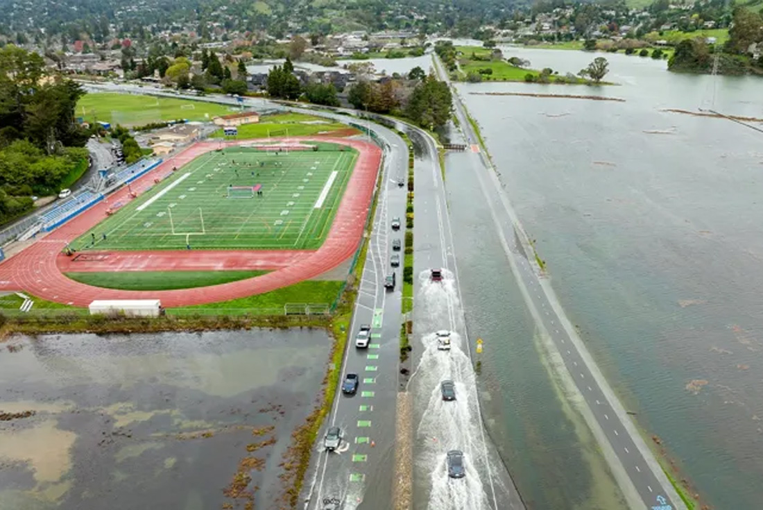 Ubicado al norte del puente Golden Gate, frente a San Francisco, el condado de Marin cuenta con importantes tramos de la autopista US-101 que atraviesan zonas de humedales naturalmente propensas a padecer severas inundaciones.