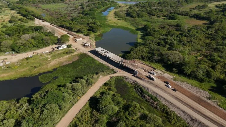 El nuevo puente aliviador sobre el arroyo El Pindó alcanza un 75 % de ejecución y forma parte de una secuencia de estructuras que optimizarán el tránsito y la vinculación interprovincial en el norte santafesino.