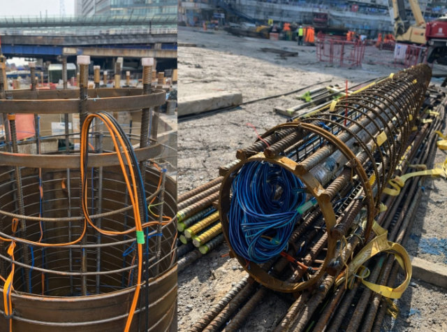 En la estructura del One North Quay, el enfoque es distinto: se busca anticipar desde el inicio la reutilización, instrumentando pilotes con cables de fibra óptica y medidores convencionales para monitorear temperatura, deformaciones y presiones de contacto en el suelo. Esta información será clave para ajustar estrategias de diseño adaptativo y, eventualmente, aumentar la capacidad portante de las fundaciones en el futuro.