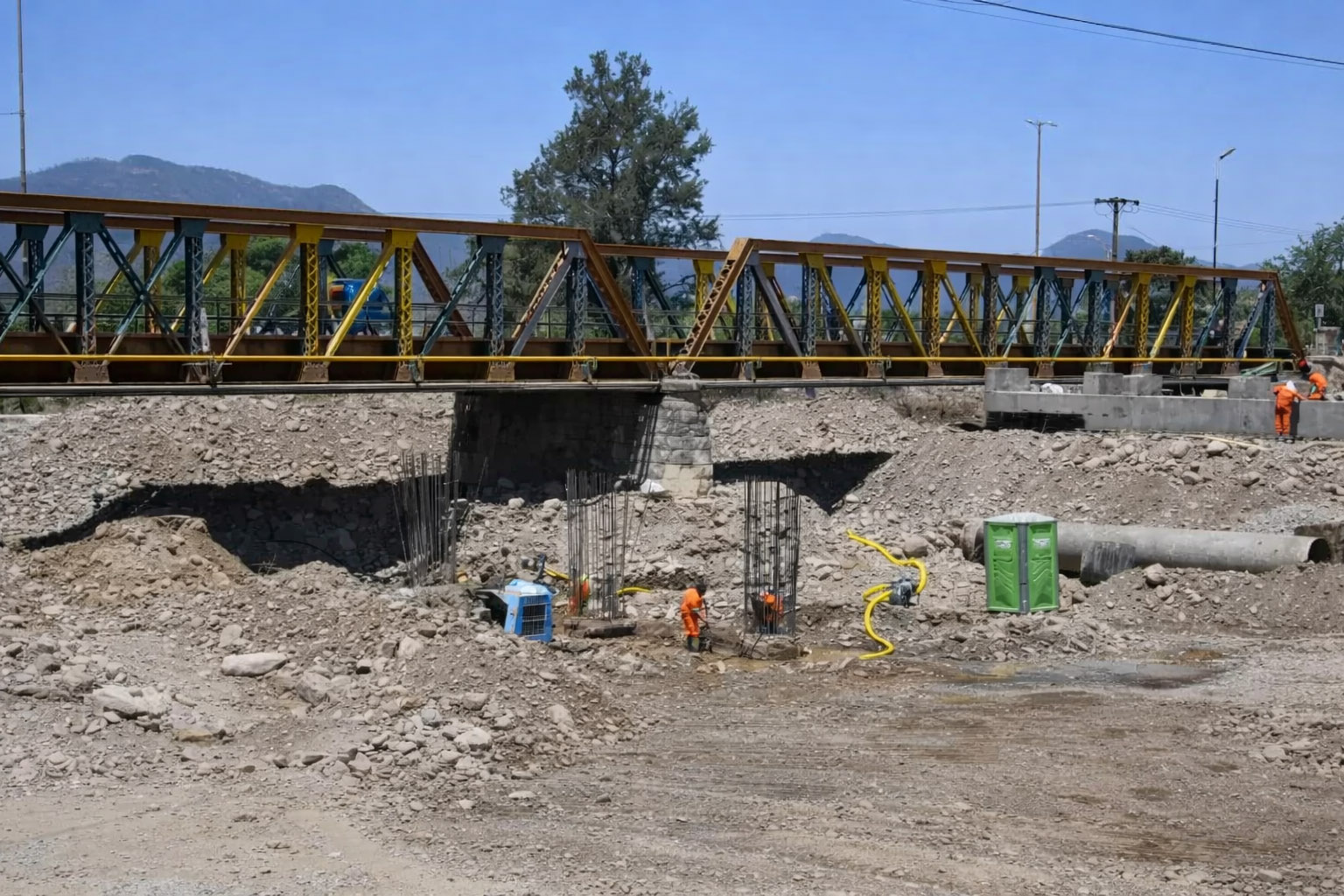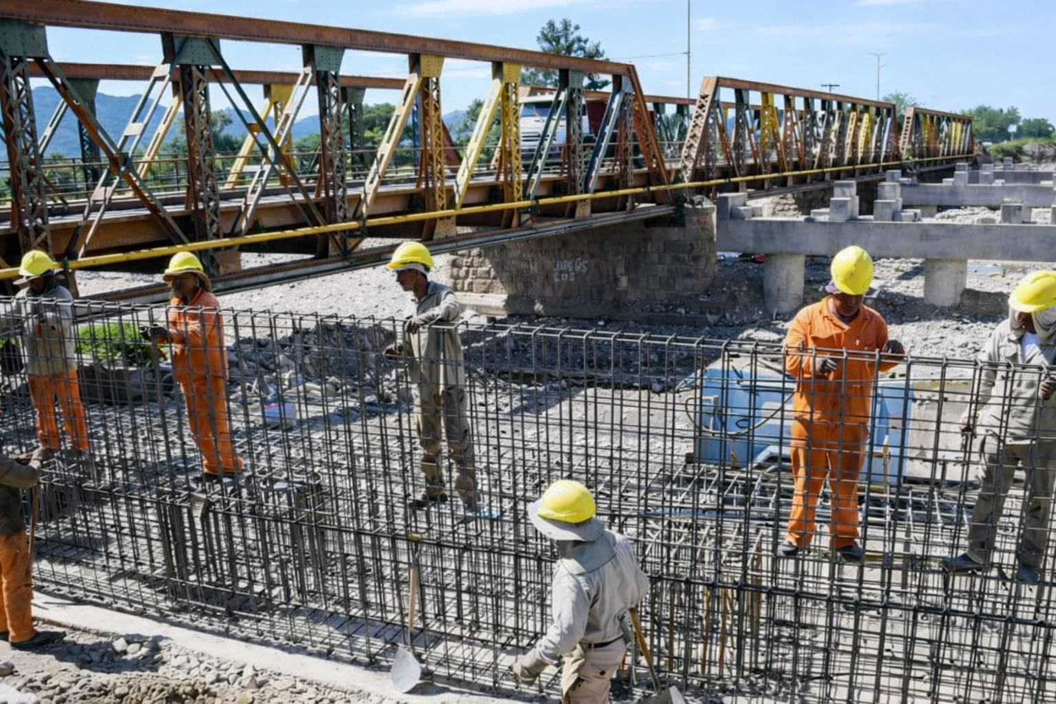 En la actualidad, los trabajos se concentran en la ejecución de los estribos y fundaciones en ambas márgenes del río, tanto en el sector norte como en el sur, correspondientes al primero de los nuevos puentes. Estas tareas constituyen una etapa crucial para dar paso al montaje de vigas prefabricadas y a la posterior ejecución de la losa de hormigón, que permitirá avanzar hacia la habilitación progresiva de la estructura. Paralelamente, se desarrollan movimientos de suelo, conformación de terraplenes y obras complementarias vinculadas a la futura traza vial que acompañará a los puentes.