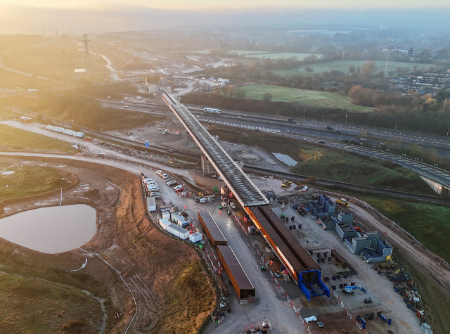 Este proyecto ferroviario de alta velocidad alcanzó un logro inédito en el Reino Unido al completar el deslizamiento del tablero este del viaducto —una estructura de 315 metros de longitud y 4.600 toneladas de peso— sin interrumpir el importante tránsito vehicular de la autopista M6.