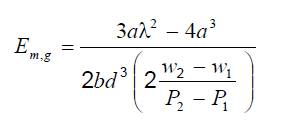 Para la determinación del módulo de elasticidad global, el ensayo se realiza con las mismas características que para el caso del módulo de elasticidad local, efectuándose la medición de la deformación en el centro de la luz y en el centro del borde traccionado. Si se mide en el eje neutro debe tomarse la dimensión de las mediciones realizadas en ambas caras de las probetas. La expresión de cálculo es la siguiente: