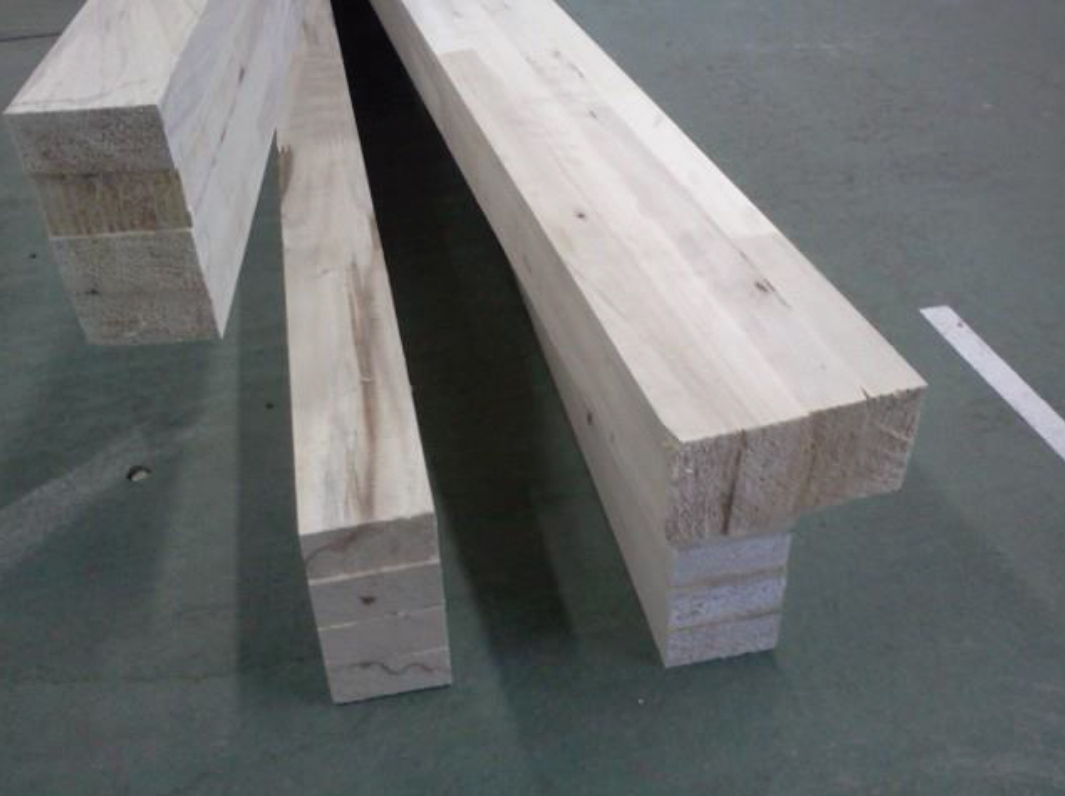 Se utilizan para cada una de las probetas cuatro tablas de aproximadamente 25 mm de espesor y 50 mm de ancho, cuidando que las dos tablas de los cuartos exteriores no presenten nudos o tengan una nudosidad menor que 1/3 y los nudos de las tablas de los dos cuartos interiores presenten una nudosidad menor que 2/3, para obtener un producto de Grado 1, según se establece en la norma IRAM 9660-1. En la Figura 1 se muestra un grupo de los elementos elaborados.