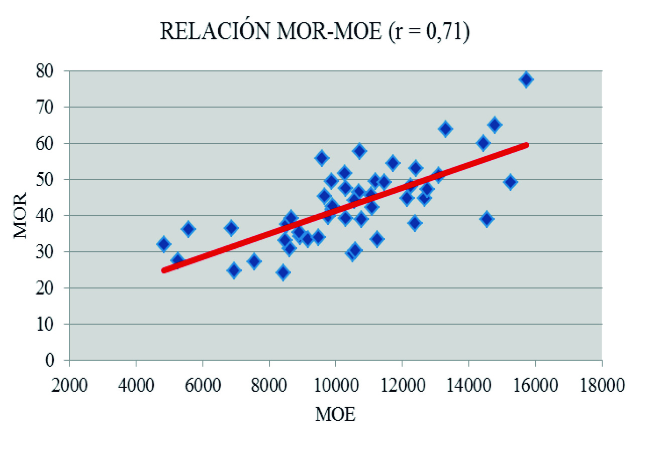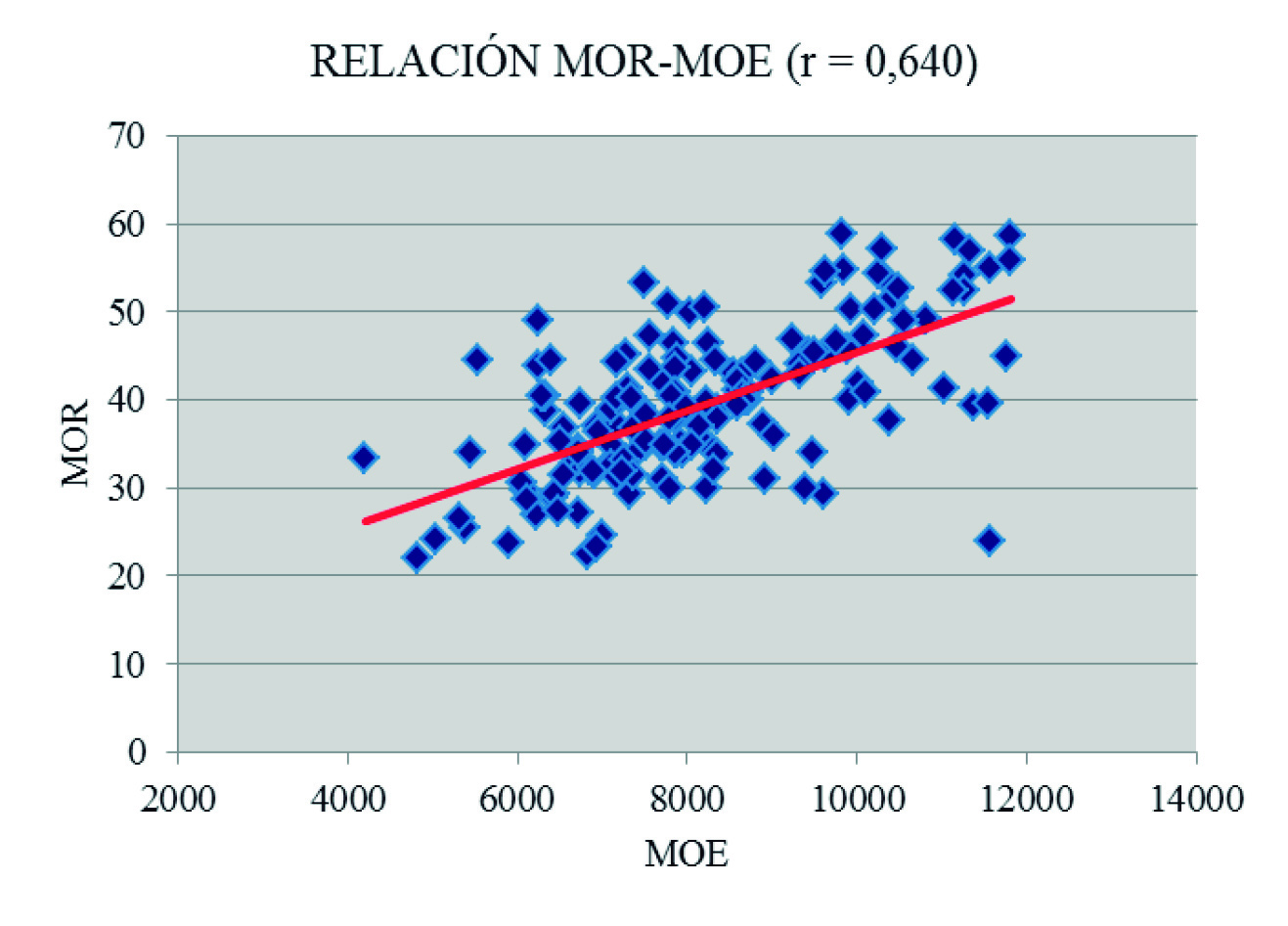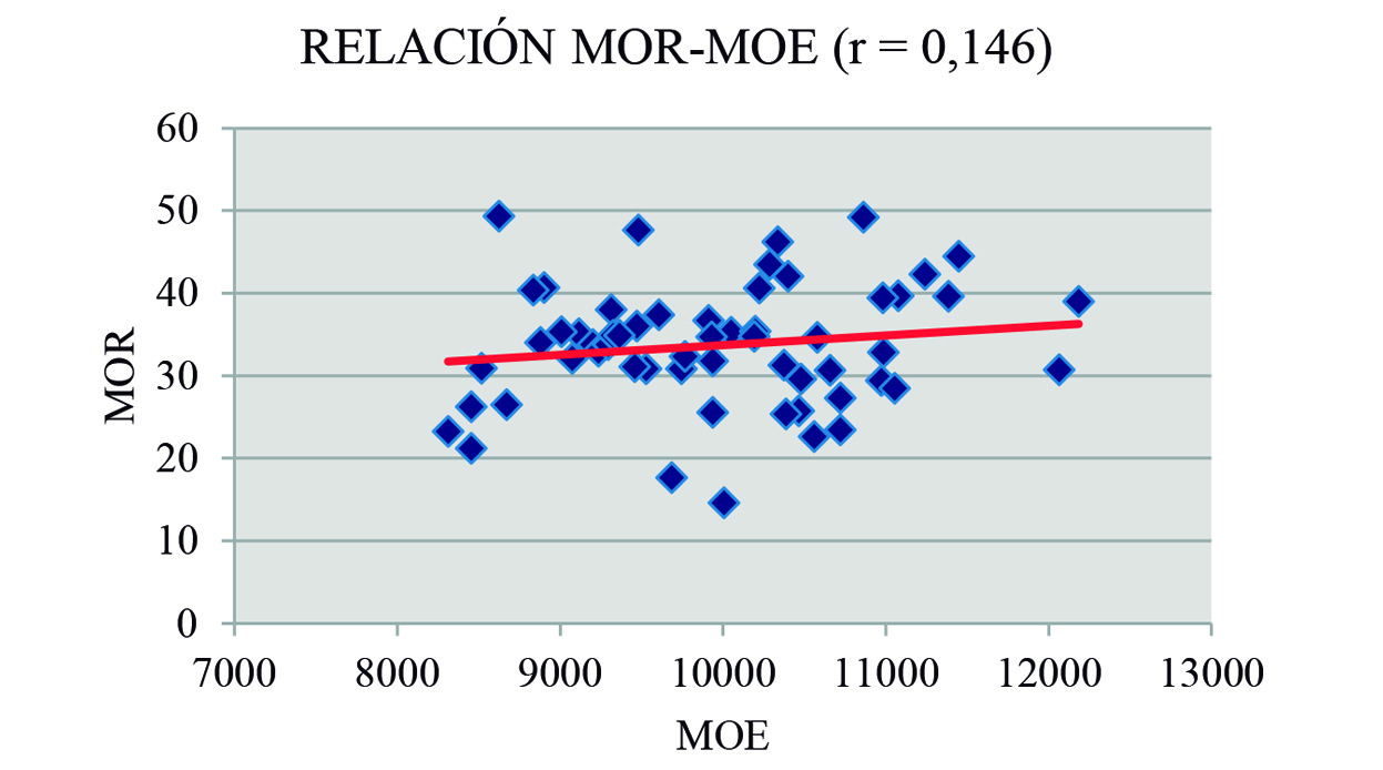 Figura 3. Relación MOR-MOE para tablas.