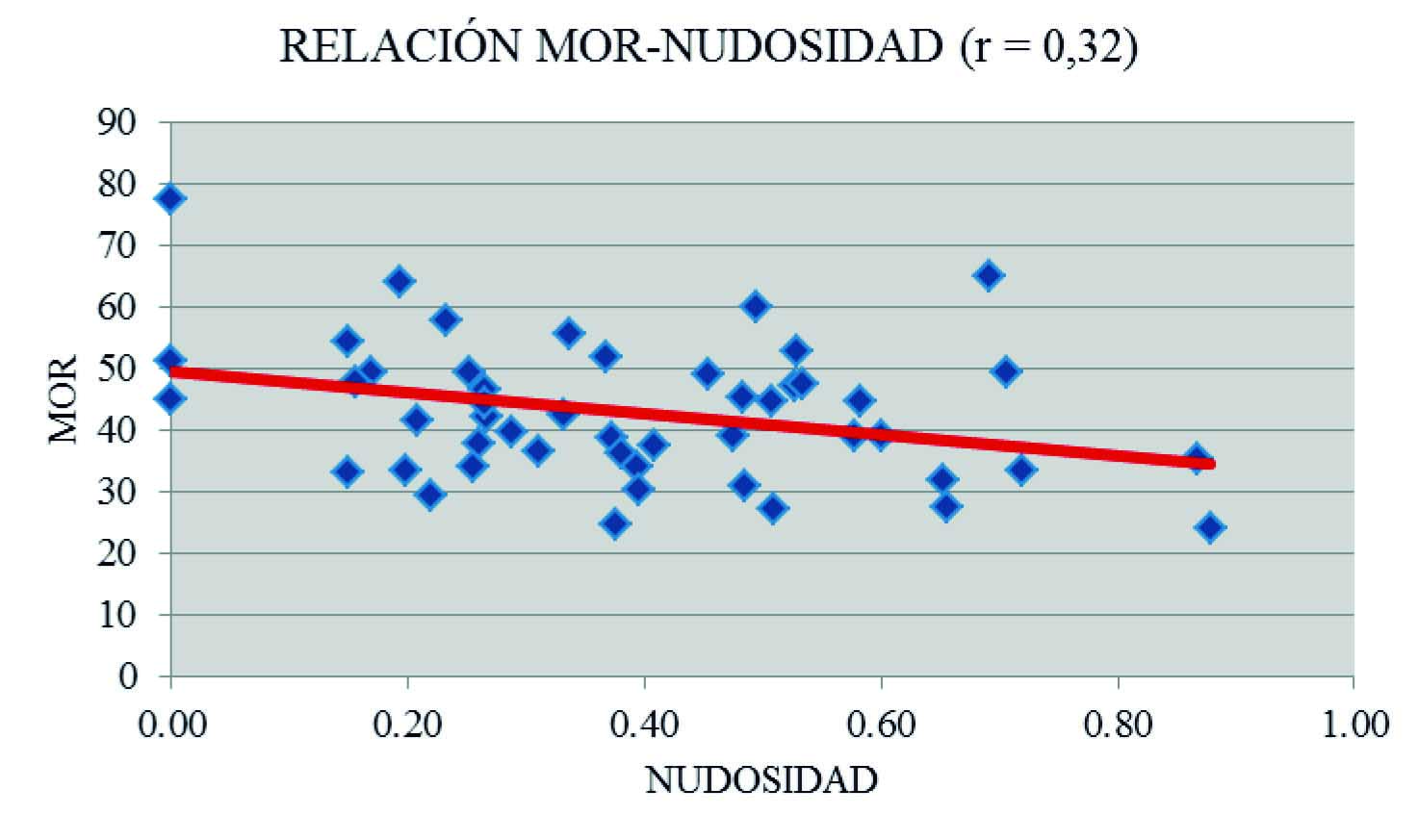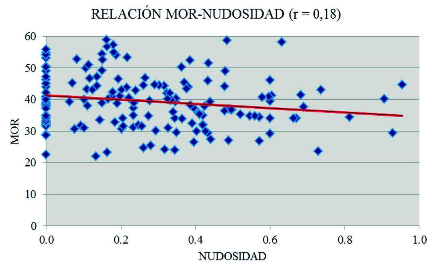 Figura 6. Relación MOR-Nudosidad para tablas.