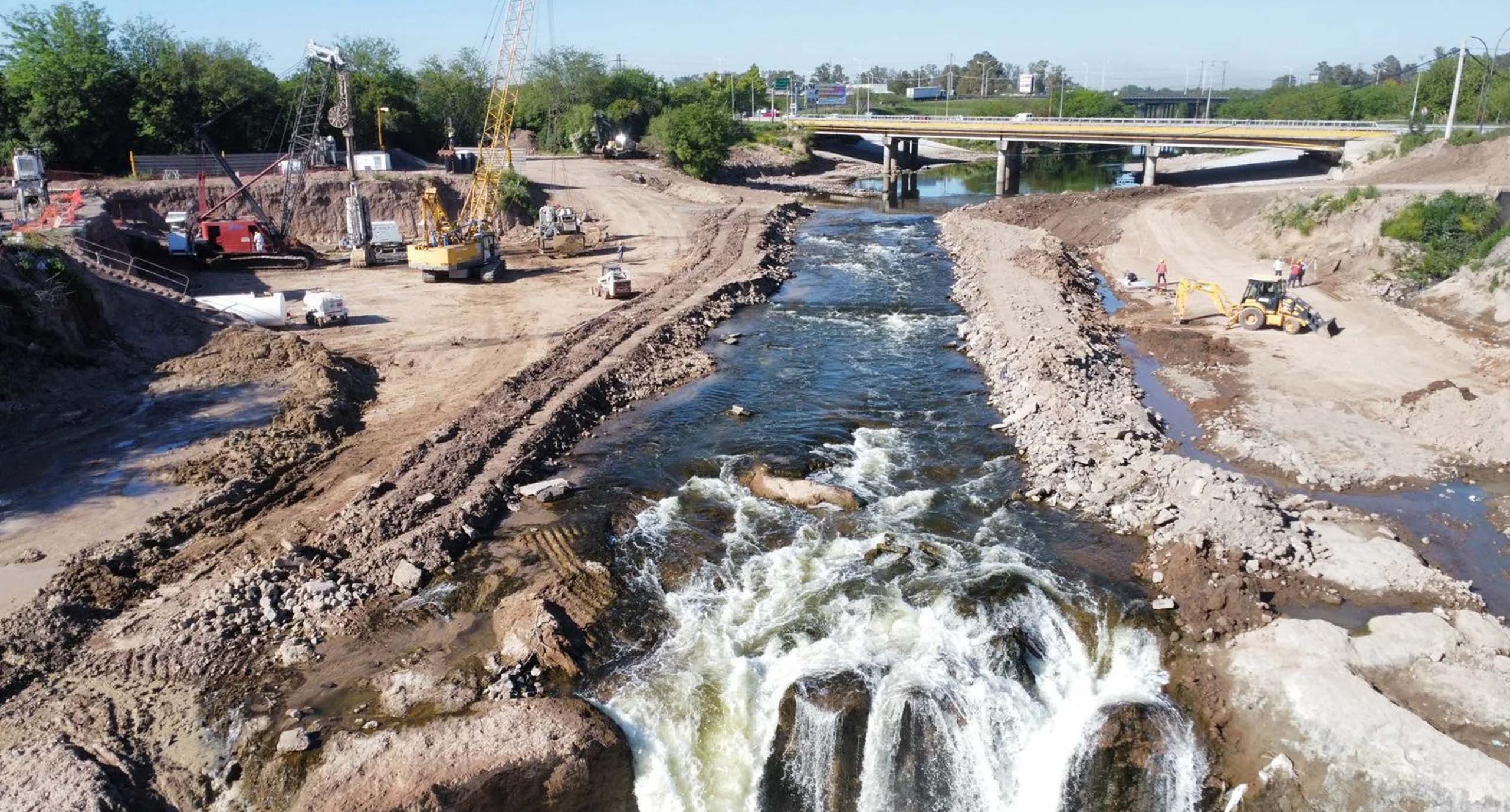 Avanza la segunda etapa de las obras de estabilización en la cascada del Arroyo Saladillo, en el límite entre Rosario y Villa Gobernador Gálvez. Con un avance en su ejecución, la intervención busca detener el proceso erosivo que amenaza la estructura del Puente Molino Blanco y la infraestructura vial.