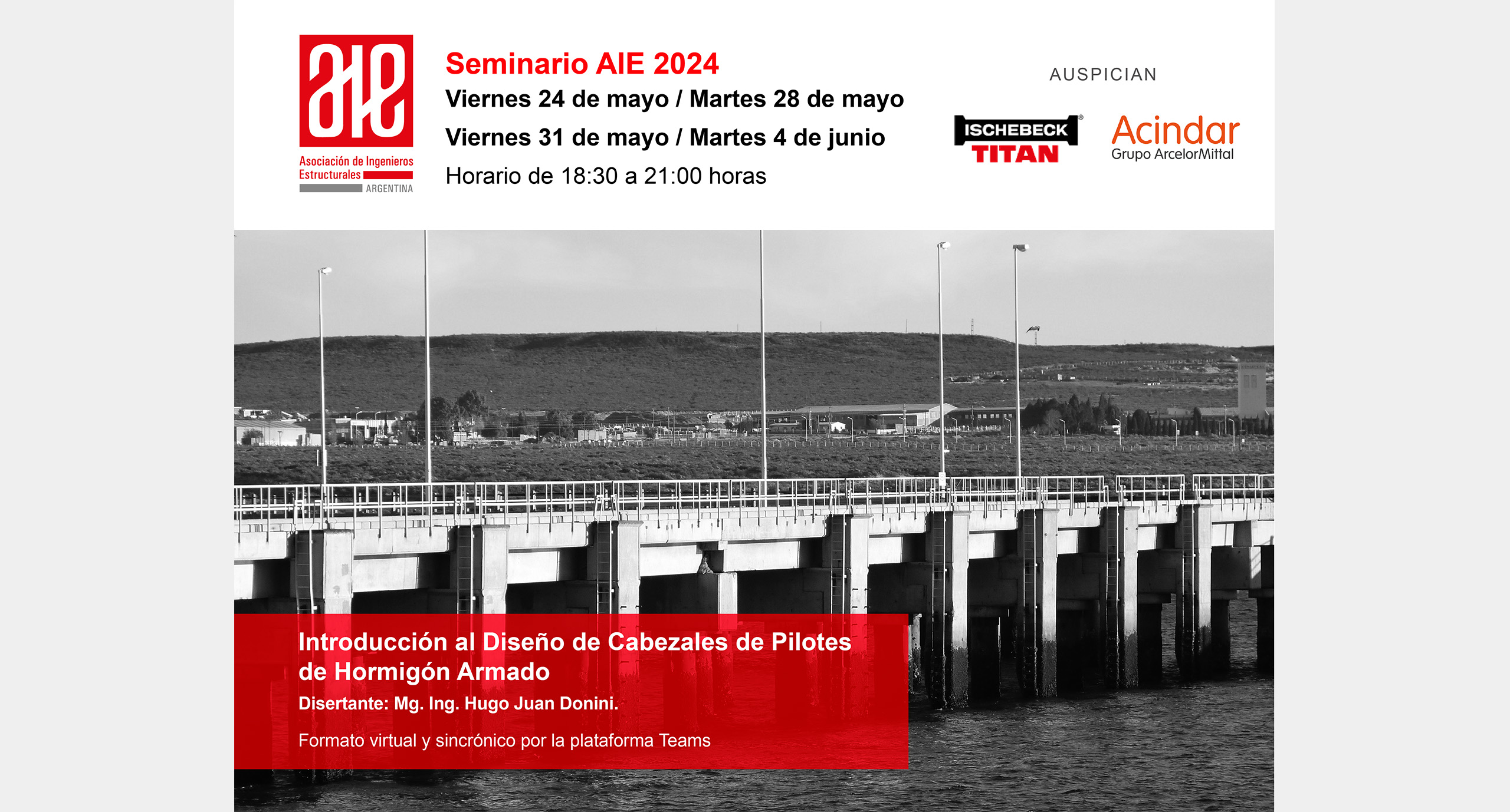La Comisión de Cursos de la Asociación de Ingenieros Estructurales (AIE) organizó el Seminario virtual y sincrónico "Introducción al Diseño de Cabezales de Pilotes de Hormigón Armado", el cual fue impartido por el Mg. Ing. Hugo Juan Donini, con importante asistencia.